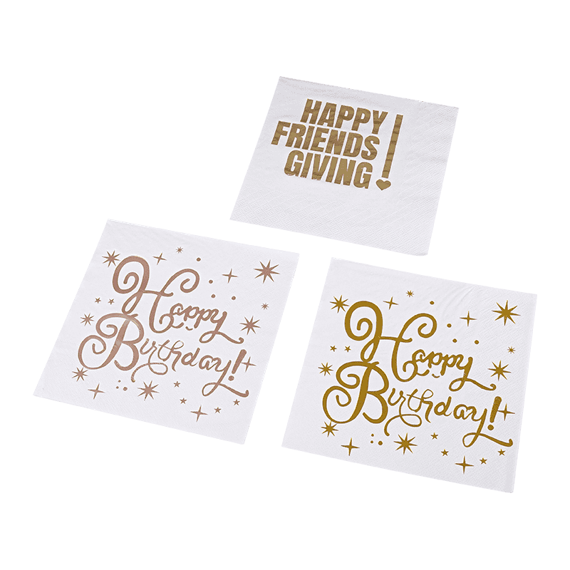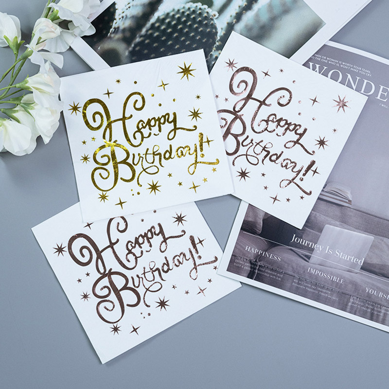 33x33 Boldog születésnapot koktél szalvéták 3ply papír szalvéták forró bélyegzővel SJ3301